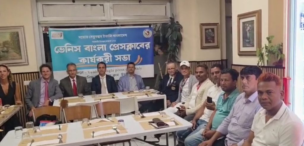 বাংলাদেশ-ইতালি প্রেস সংগঠন এর সেতুবন্ধন,”ভেনিস বাংলা প্রেস ক্লাব ইতালি”(প্রতিষ্ঠাকাল -২০০৯ খ্রীঃ এবং ইতালিয়ান সরকারি রেজিষ্ট্রেশন নাম্বার- ১৭৪) এর ইতালি ও বাংলাদেশ নিয়ে নবগঠিত কার্যকরী পরিষদের পরিচিতি ও অভিষেক আগামী ১৫ নভেম্বর রোজ শনিবার বিকাল ৫ ঘটিকায় ইতালির ঐতিহাসিক পর্যটন নগরী ভেনিসের মেস্ত্রে শহরের ভিয়া আলেয়ার্দি (এর কলবে) হলরুমে আয়োজন করার জন্য আহবায়ক কমিটির সর্বসম্মতিক্রমে সিদ্ধান্ত গৃহীত হয়েছে এবং উক্ত অভিষেক অনুষ্ঠানে ইটালি, বাংলাদেশ ও ইউরোপ থেকে বিভিন্ন গুরুত্বপূর্ণ ও মিডিয়া ব্যক্তিত্ব উপস্থিত থাকবেন বলে আশাবাদ ব্যক্ত করা হয়।